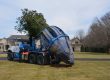 In order to relocate a tree successfully, the receiving hole is prepared before the tree is lowered into place.