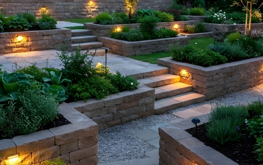 Stairs, terraced seating, patio edges, retaining walls, these areas become invisible at night without lighting, and invisible is dangerous. But lighting them too harshly makes it look like emergency exit signage.