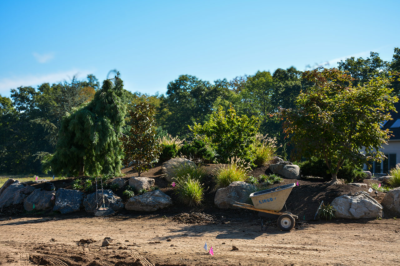 ✓ Mulch installation after bed preparation